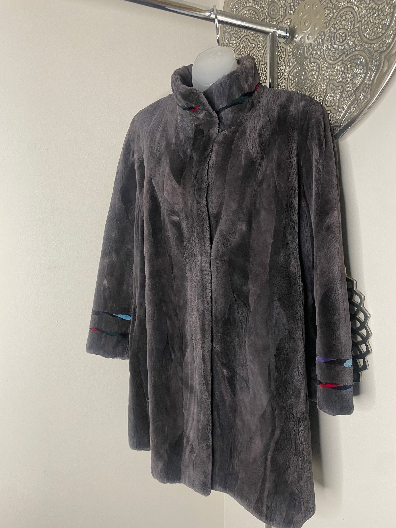 Grey Fur Coat w High collar (Large)
